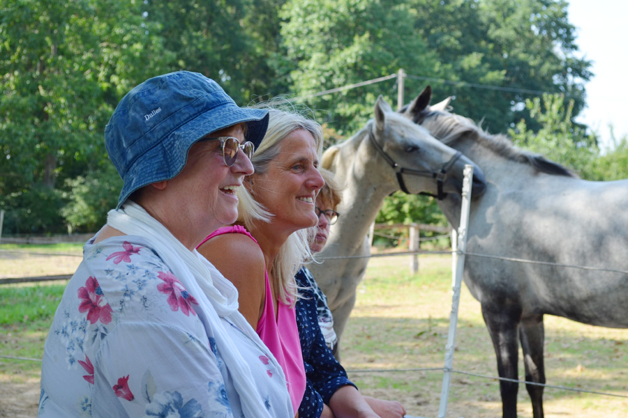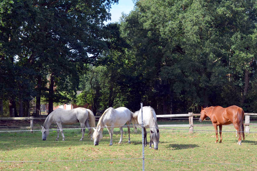 Die Pferde sind gut ausgebildet, freundlich und gelassen. Sie leben artgerecht im Herdenverband und Offenställen.